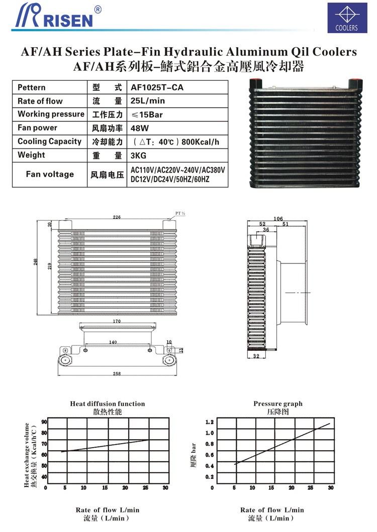 產(chǎn)品中心 >> 風冷卻器 >> RISEN日森系列風冷卻器 >> RISEN 日森 層疊式 風冷卻器 風冷AF1025T-CA 25L
