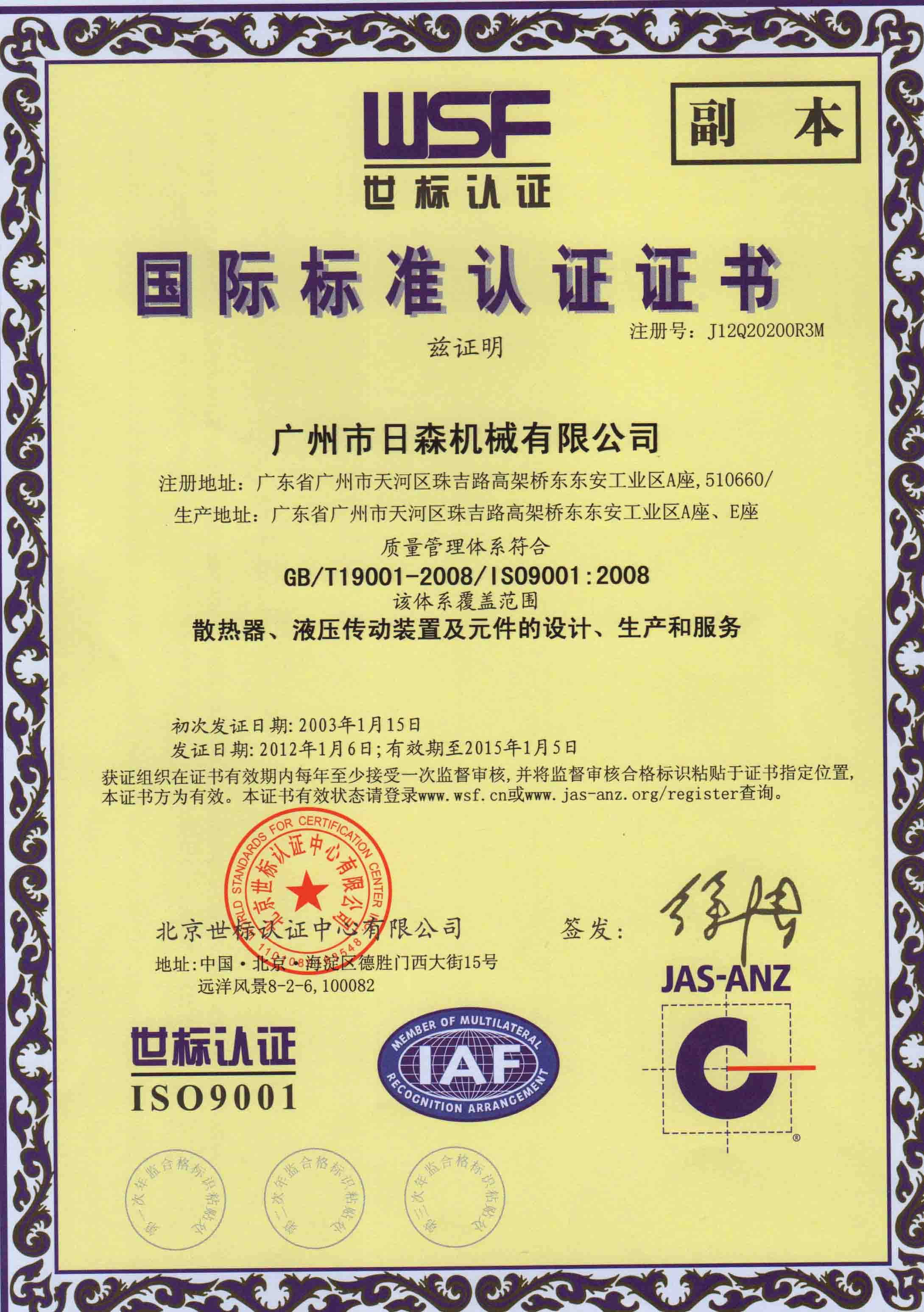 日森公司ISO9001:2008第三次年監(jiān)通過啦
