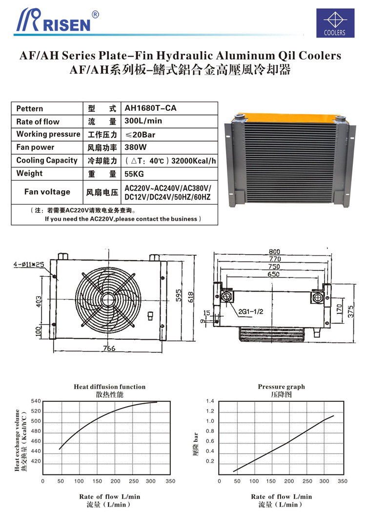 RISEN 日森 板式 風冷卻器 風冷 AH1680TT-CA 300L